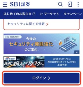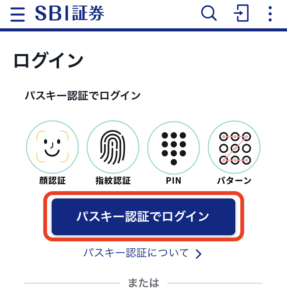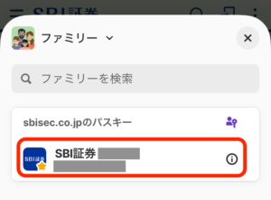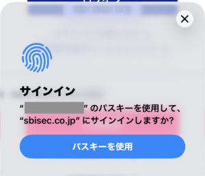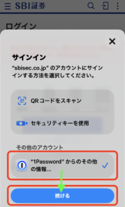 パスキーを保存したSBIのアカウントを選択して「続ける」をタップします。これでログイン完了です。